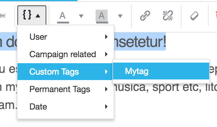 Once the tag is added, you can select it from the drop-down menu in the editor: