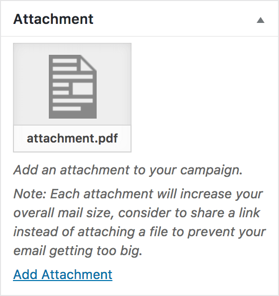 You can add attachments to your campaigns by using the attachment meta box on the campaign edit screen.