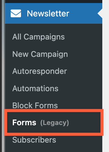 Head over to the Newsletter menu and click on Forms (Legacy).