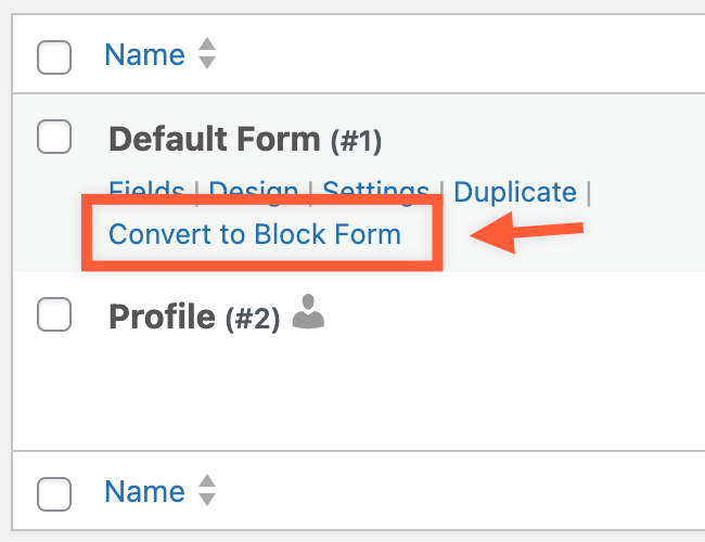 If you’re not able to find this entry, you can enable legacy forms on the settings page.