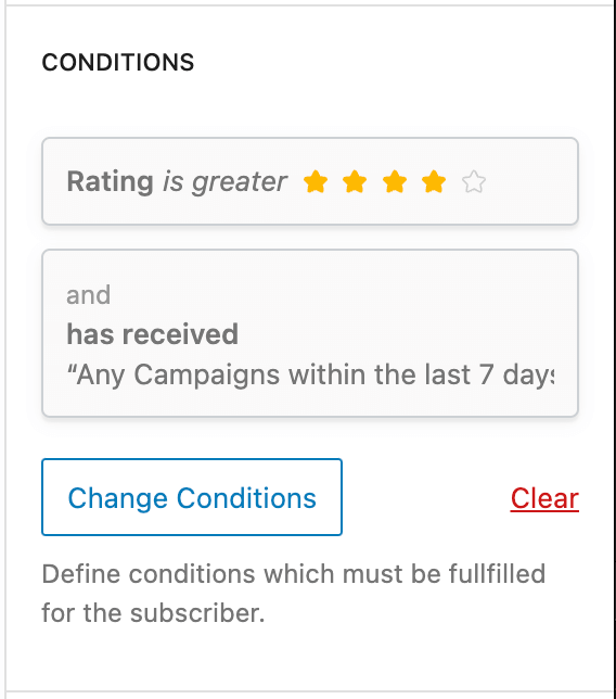 Mailster will make sure the subscriber running the workflow fulfills the conditions before continuing.