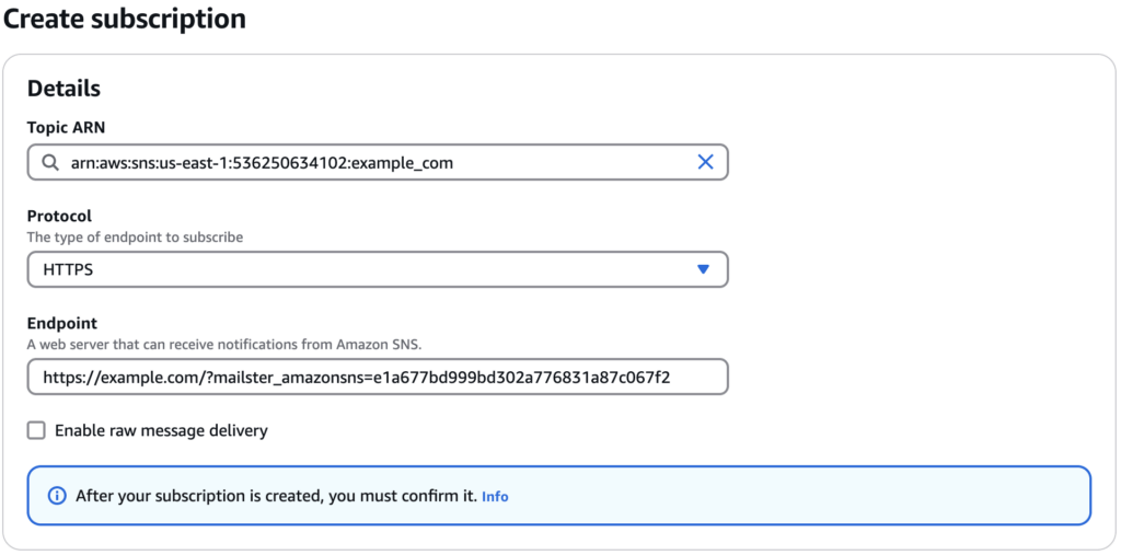 AmazonSNS now sends a confirmation to this endpoint, and the add-on automatically verifies it.