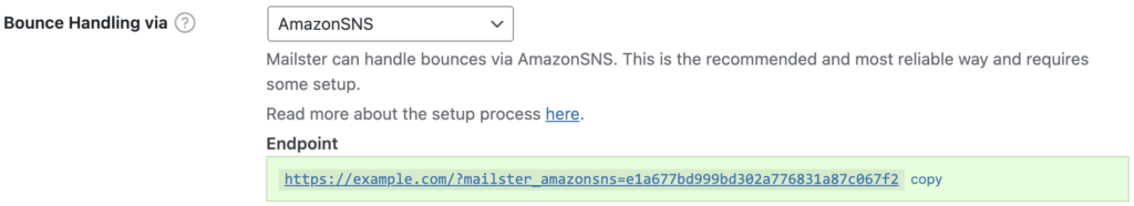 If you are sending your Campaigns with Amazon’s Simple Email Service you can use the regular Bounce option that comes with Mailster. If you like to have more control over bounces you should switch to AmazonSNS.