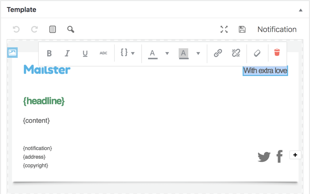 Mailster uses the notification template file of your template to send certain emails. You can change this template with the campaign editor.