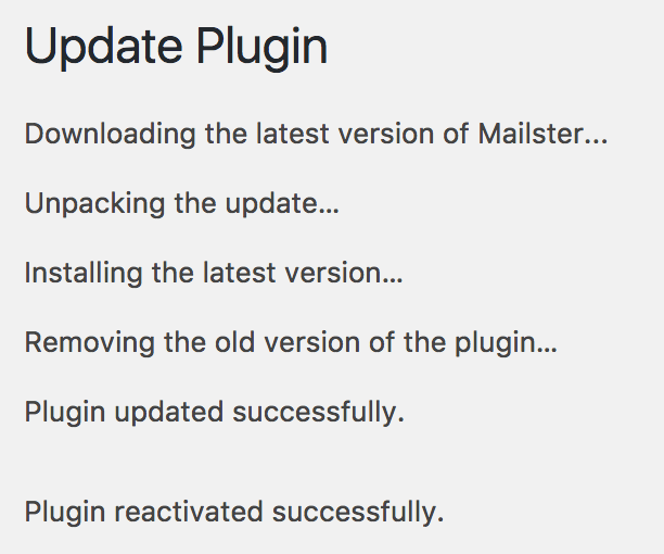 The easiest way to update Mailster is like a regular WordPress plugin from the repo.