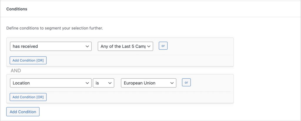 You can limit the export to certain conditions. This can help you if you only like to export a certain segment from your audience.