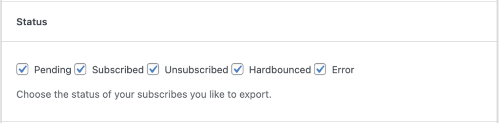 Export subscribers only with a certain status by selecting the right checkbox.
