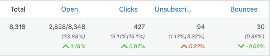 The red percentage (0.27%) is the unsubscribe rate compared to your other campaigns within the last year.