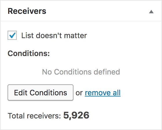 In the receiver, meta box clicks on “Edit Conditions” to add or remove conditions for the receivers.