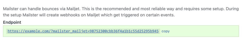 Locate the specific endpoint on the Mailster settings page, which resembles something along these lines.