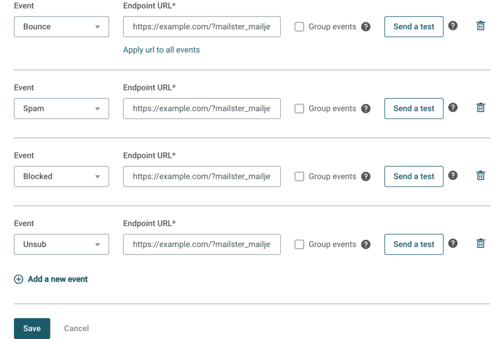 https://example.com/?mailster_mailjet=98752300cbb36f4a1b1c55d25295b945Navigate to the Event notifications (webhooks) section and proceed to add a new Trigger for the following events: