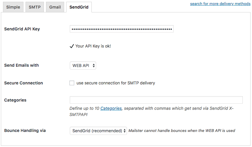 Copy the created API key and paste it on the delivery tab in the Mailster settings.