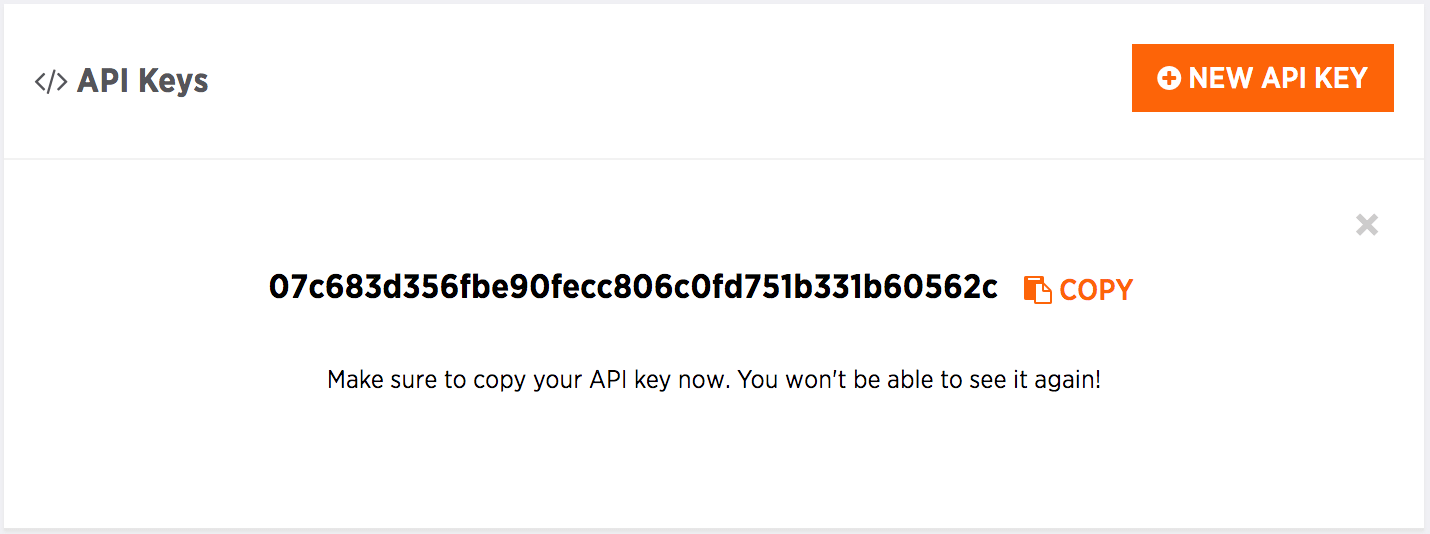Head over to the API Keys section and create a new API Key:
