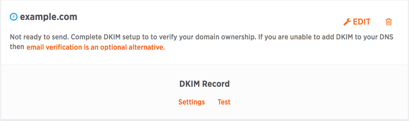 A verified domain will look like this: