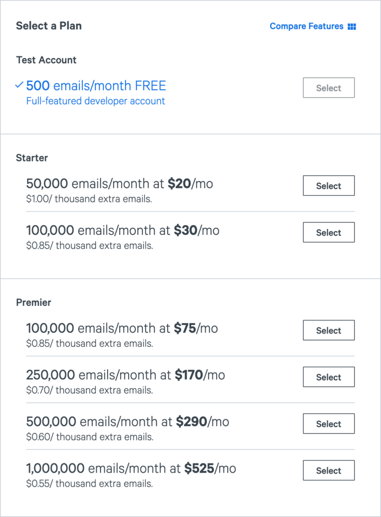 SparkPost no longer offers a free tier but you can test their service with a “Test Account”.