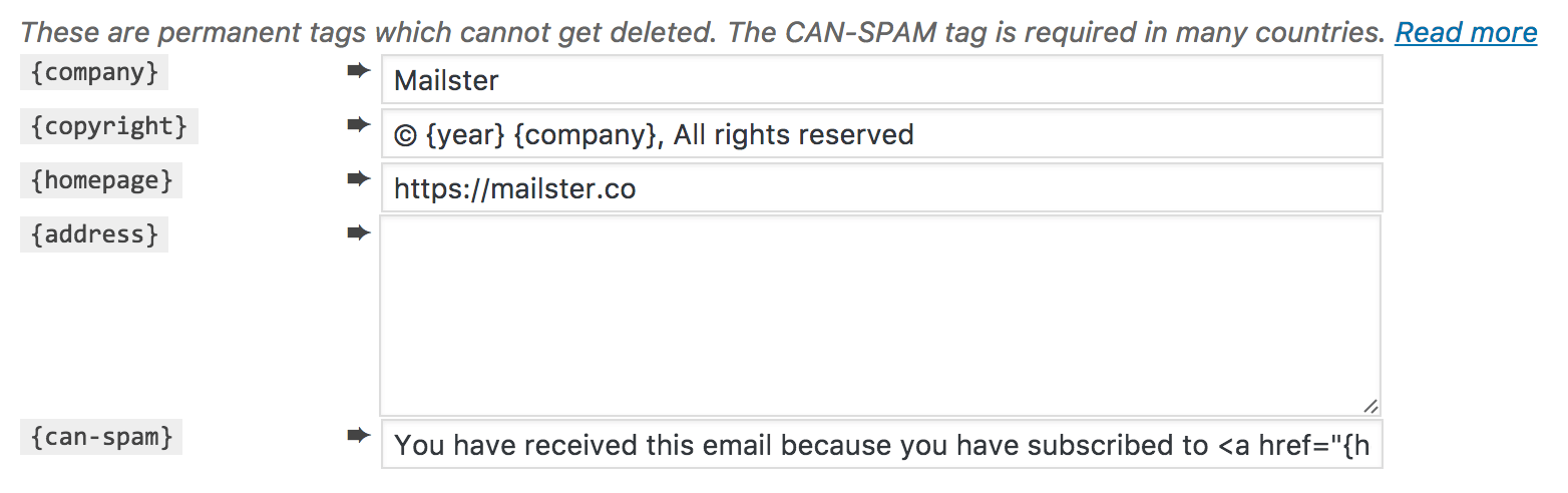 Tags are placeholders in your campaigns and are an essential part of Mailster. They always get replaced with their desired content when