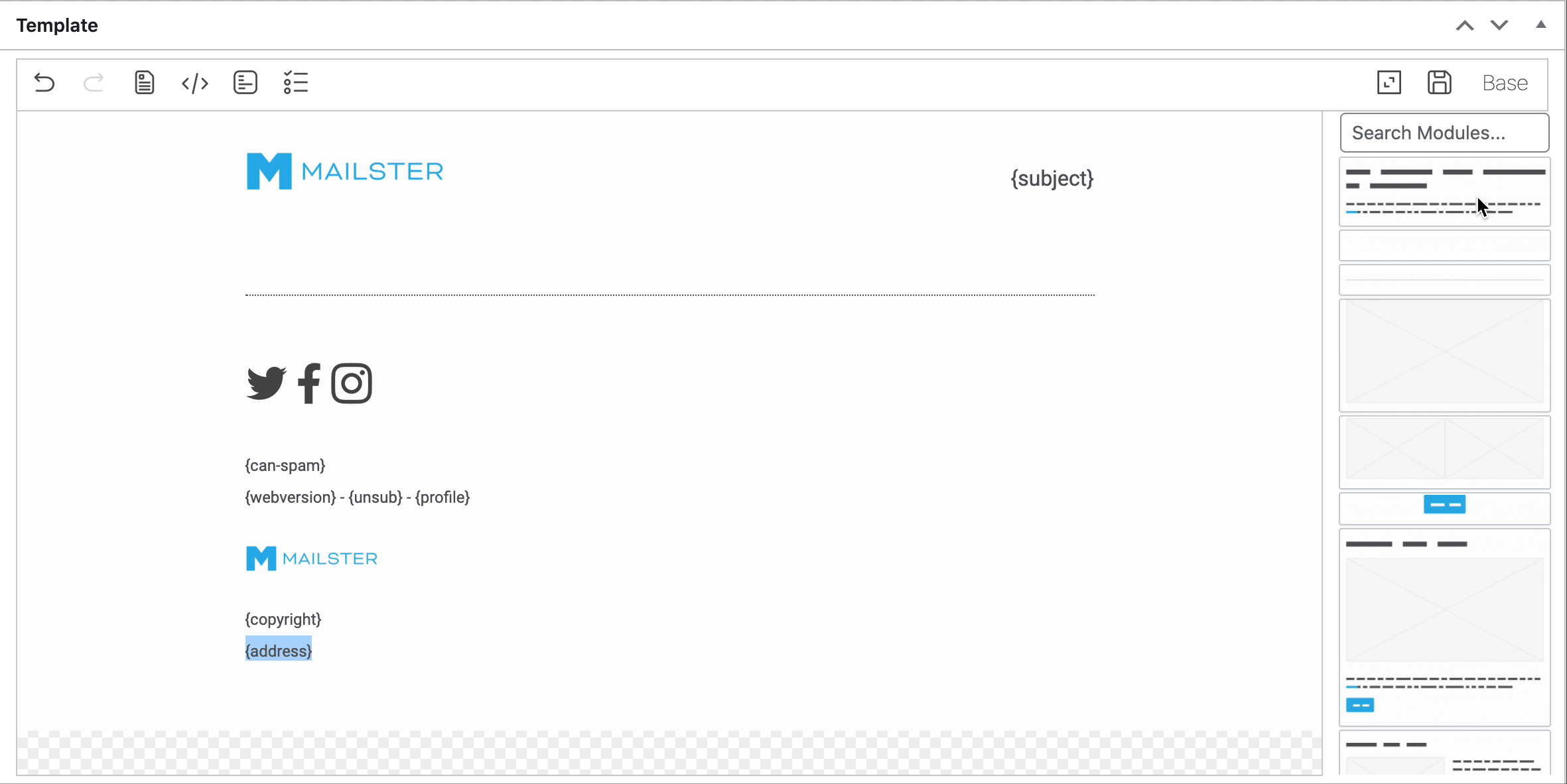 You can either click on a module or drag it into the editor to add it to your current campaign. You can rearrange modules by dragging them into the new position or using the arrows on the right.