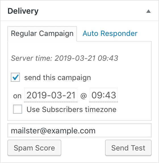A Regular Campaign is a campaign that gets sent once to each subscriber. The receivers can be defined in the Receivers Meta Box.
