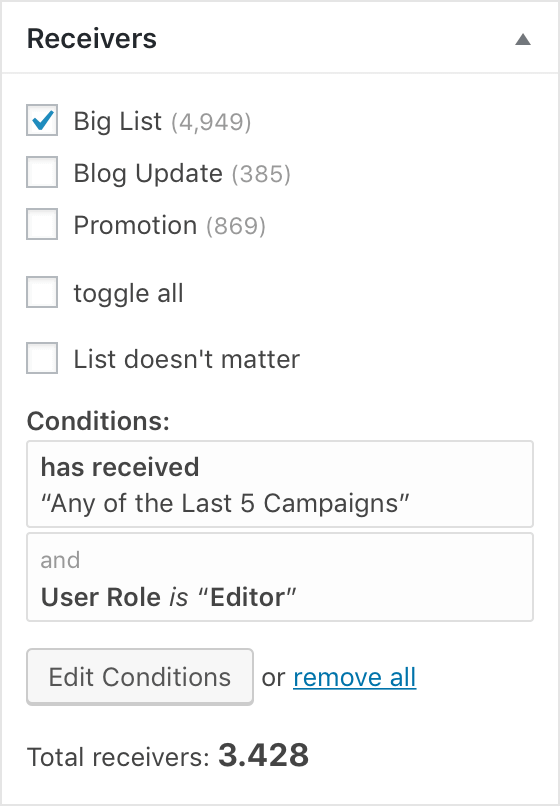 On the Receivers Meta Box, you can limit the receivers for the current campaign.