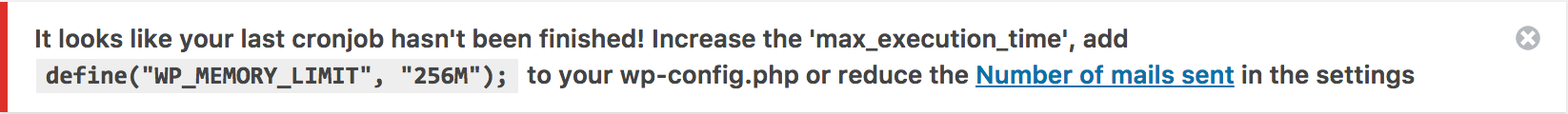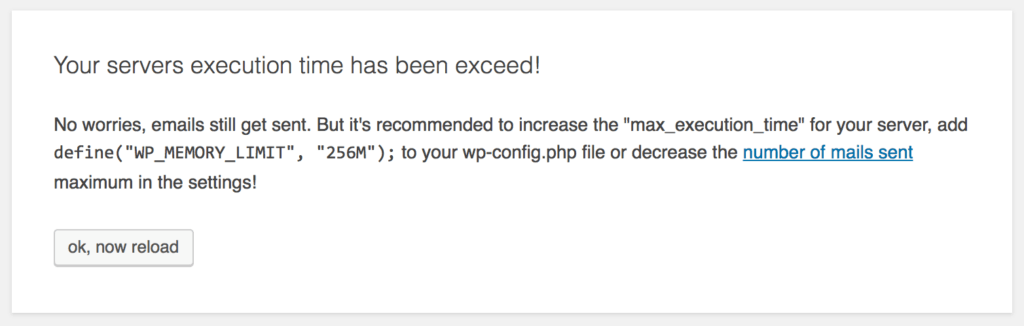 Sometimes sending emails can take longer than expected. This can cause a server timeout and wrong statistics in some cases. You’ll get a notification in this case: