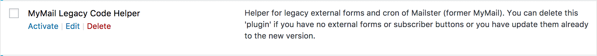 If you use any public method starting with mymail*, you can still use them in Mailster, but they will throw a “deprecated” notice.