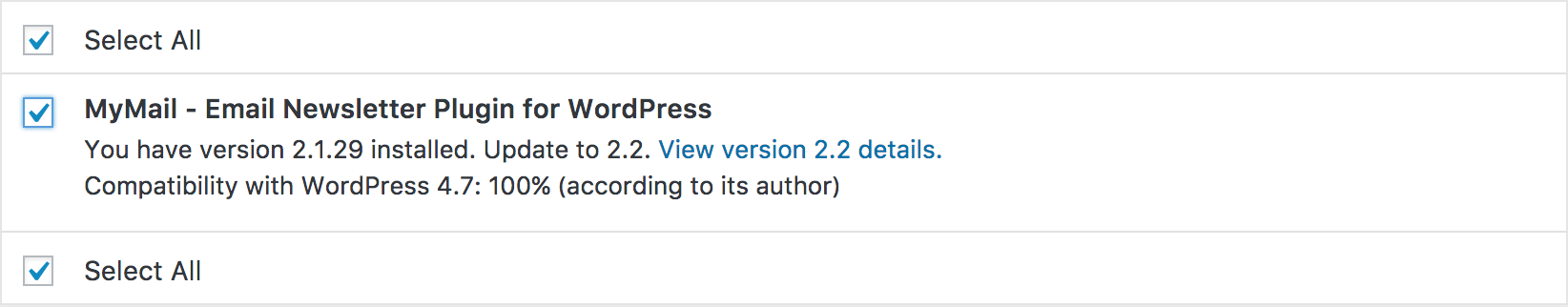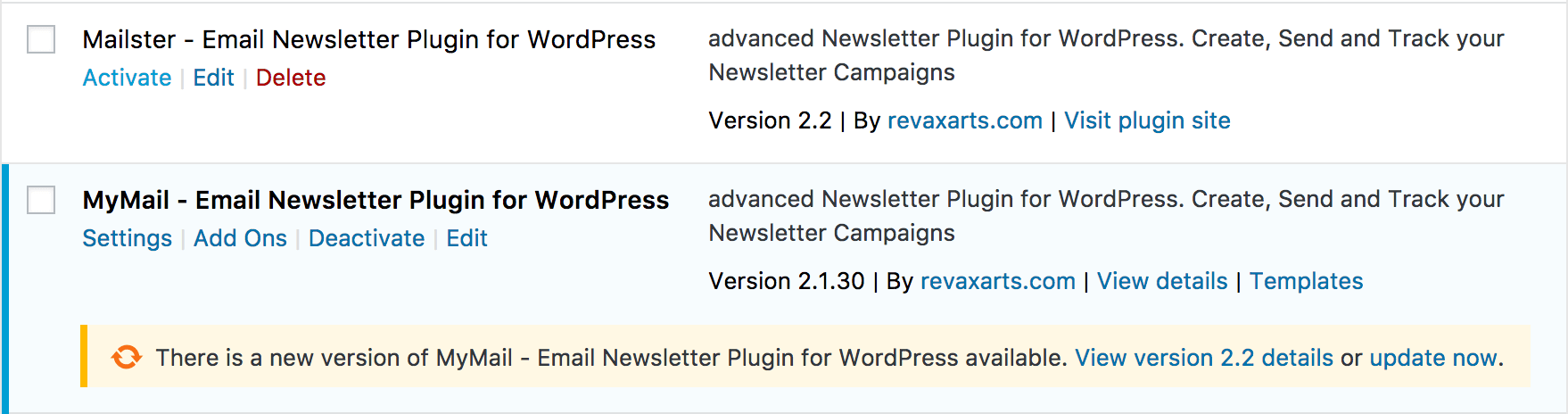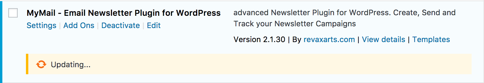 Go to WordPress => Updates, and you will see an update notification for Mailster. Update the plugin like you normally update your plugins.